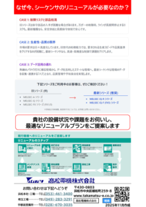 省力、省人、省エネをキャッチフレーズとしてそれらの要求を満足すべく、培った制御技術を駆使し顧客満足、しいては環境向上の社会的責任を推進していく所存です。